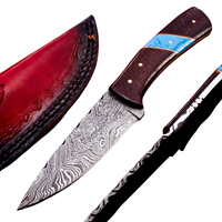 OEM personalizzabile damasco acciaio Skinner manico in legno intrecciato guaina in pelle coltello Bowie all'ingrosso